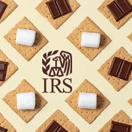 Blue and white checkered background with text: 'IRS Wrapped ’25.'