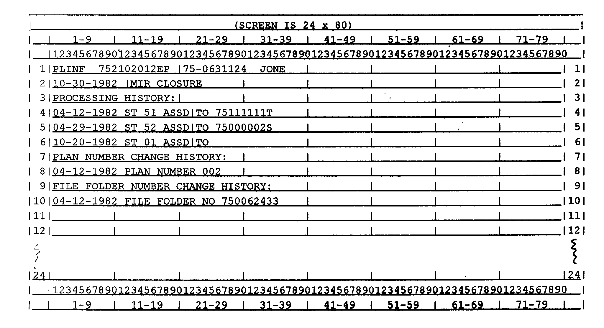 Command Code PLINQ requests a screen display of information from the Plan Organization Index File (POIF), based on data entered. This record contains the Plan Case No., which is used to access the Plan Case Control File (PCCF).