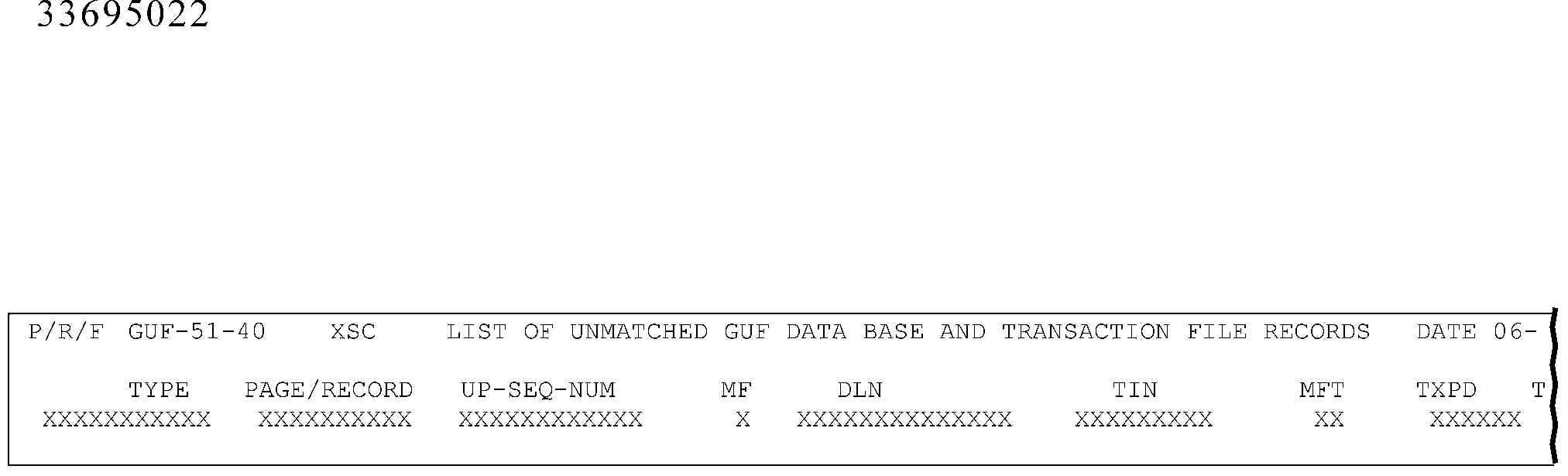 - 3.12.32.20.14 GUF 51-40, List of Unmatched GUF Data Base and Transaction File Records