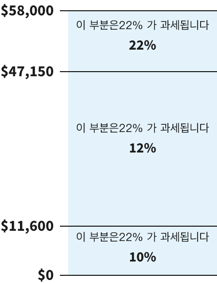 미혼 납세자의 경우, 다음 세율이 적용됩니다: