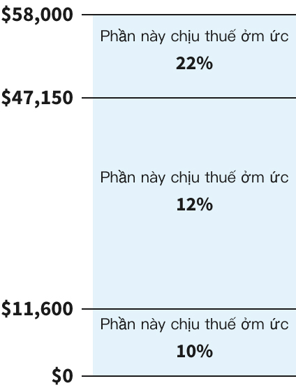 Khi thu nhập của bạn nhảy lên khung thuế cao hơn, bạn sẽ không phải trả mức thuế cao hơn cho toàn bộ thu nhập của mình. Bạn chỉ phải trả mức thuế cao hơn cho phần nằm trong khung thuế mới.