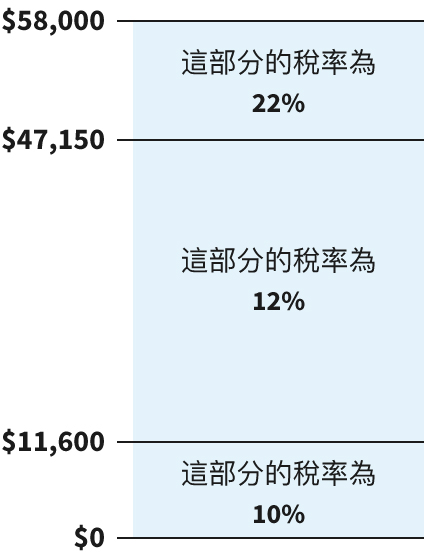 當您的收入躍升至更高的稅級時,您無需為全部收入繳納更高的稅率。您只需為新稅級中的那部分收入繳納更高的稅率。